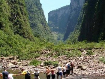 A trilha é pelo interior do cânion Itaimbézinho sobre o...